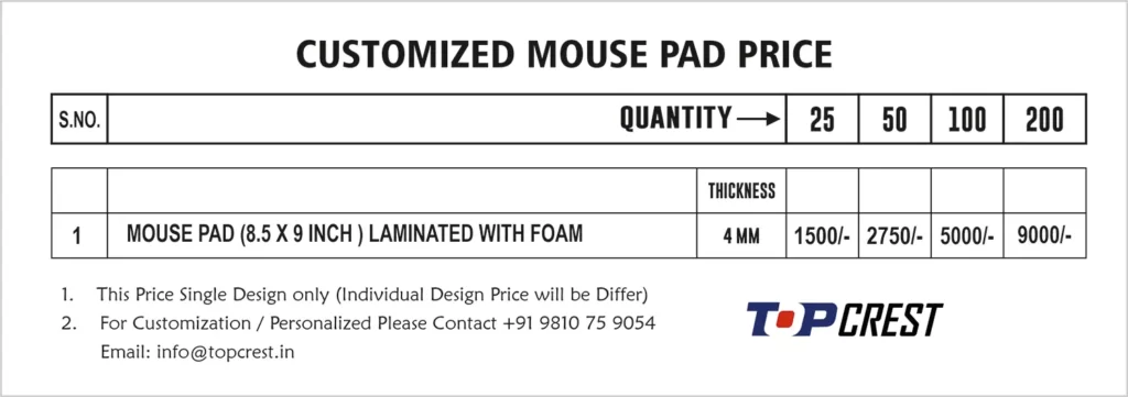 Durability: The mouse pad made of Topcrest has a long life due to its good quality and it continues to be used for many years, due to this it is very good for your company’s branding.